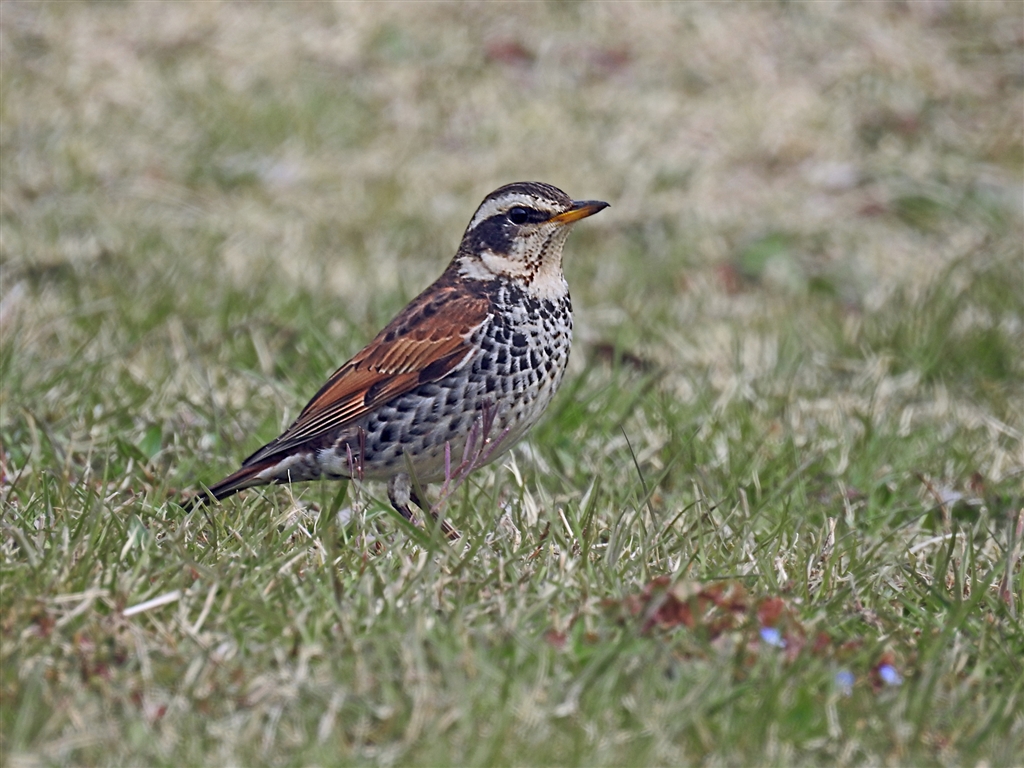参考 (通常の)ツグミ 胸から腹は黒い斑点で全体が白っぽい