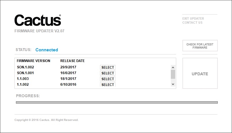 Cactusファームウェア選択画面