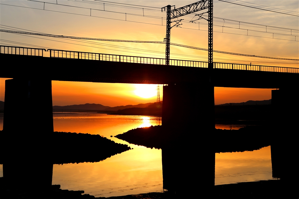 佐波川架橋と夕陽