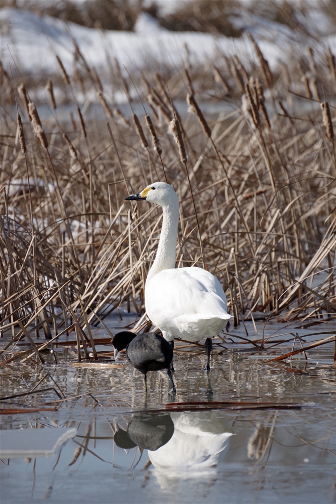 ハクチョウさんとオオバンさんのツーショット