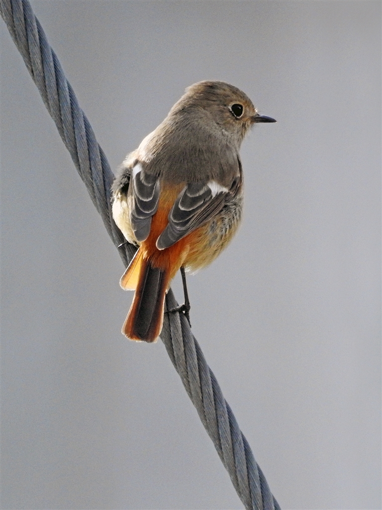 里山保存会倉庫のワイヤーにジョウビタキ♀。枝にとまらんかいと文句言い 2000mm