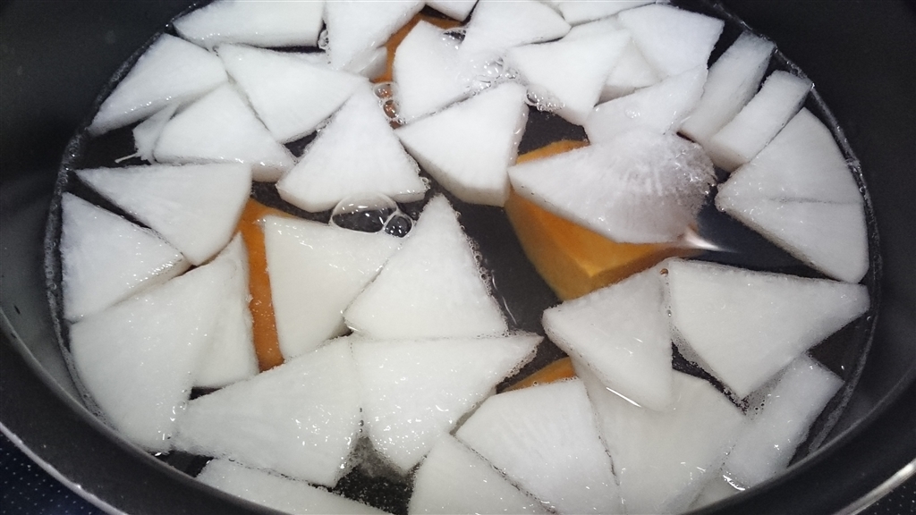 かぼちゃも入れて煮込みます。