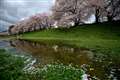 以前テレビで見た、背割り堤の桜です。