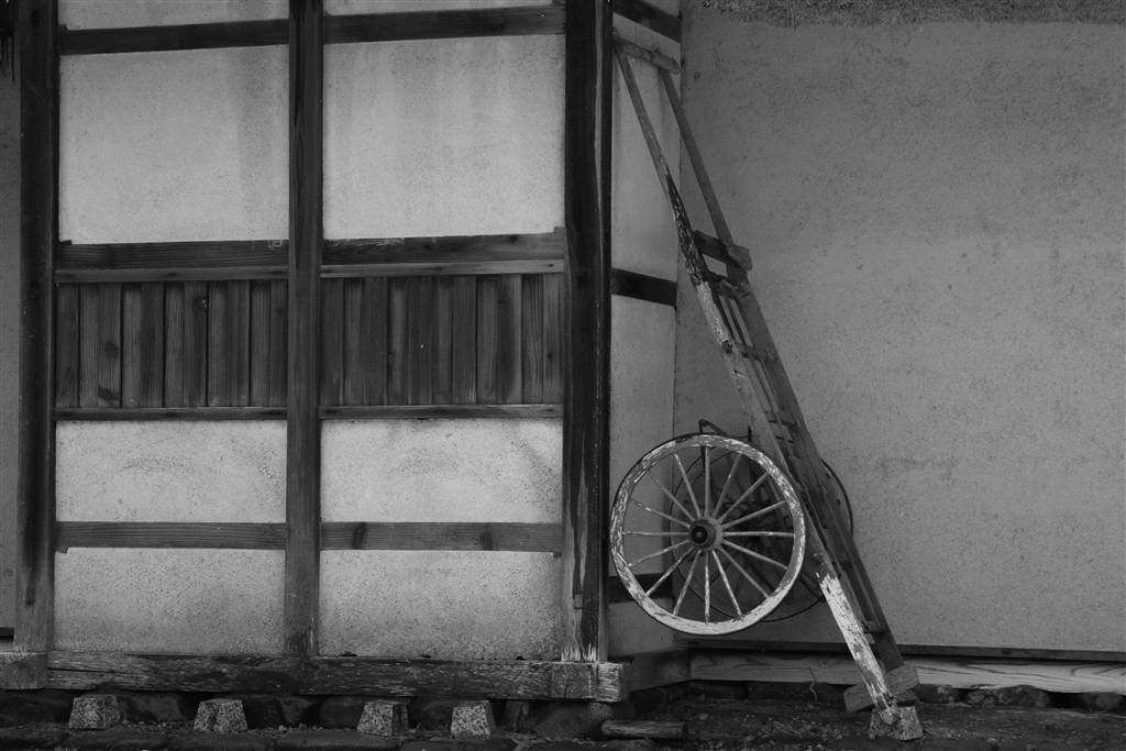 大八車。。。昔の人は荷物を乗せがたがた道を引っ張ったんですね