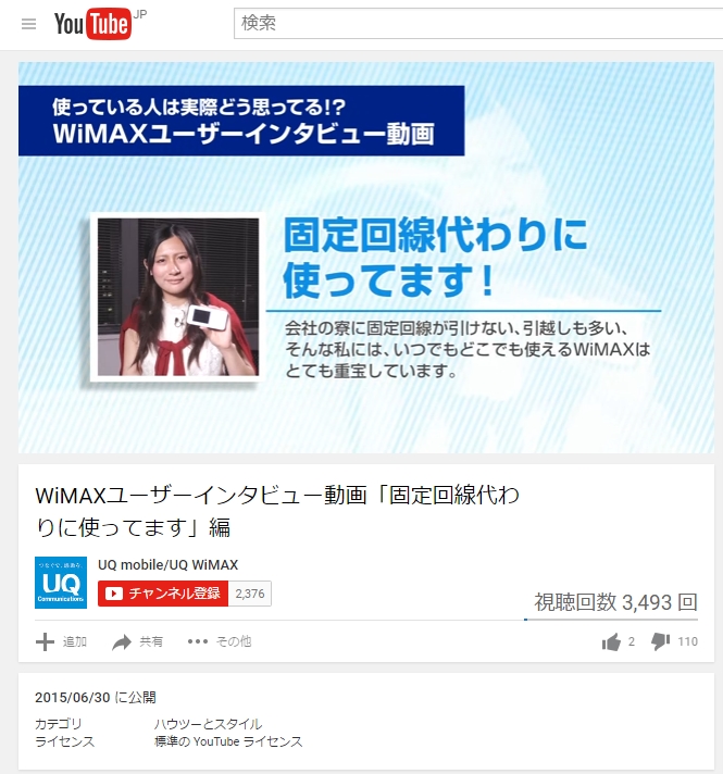 UQ WiMAX自身が固定回線代わりとアピール