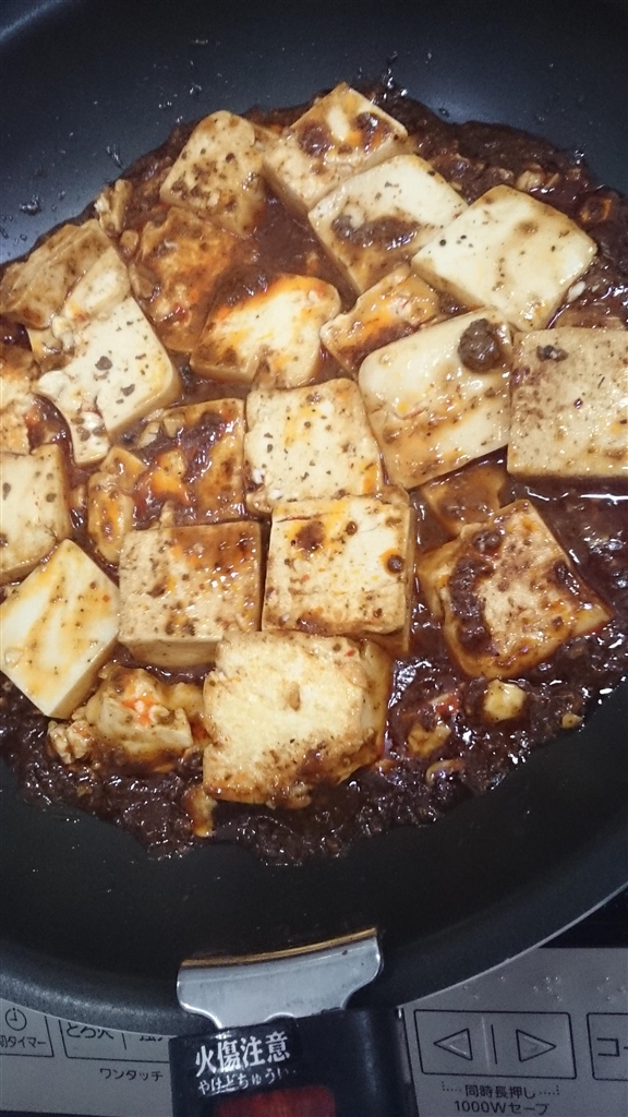 途中で味見したら・・・(´・д・`) 豆腐を一丁足しました(笑)