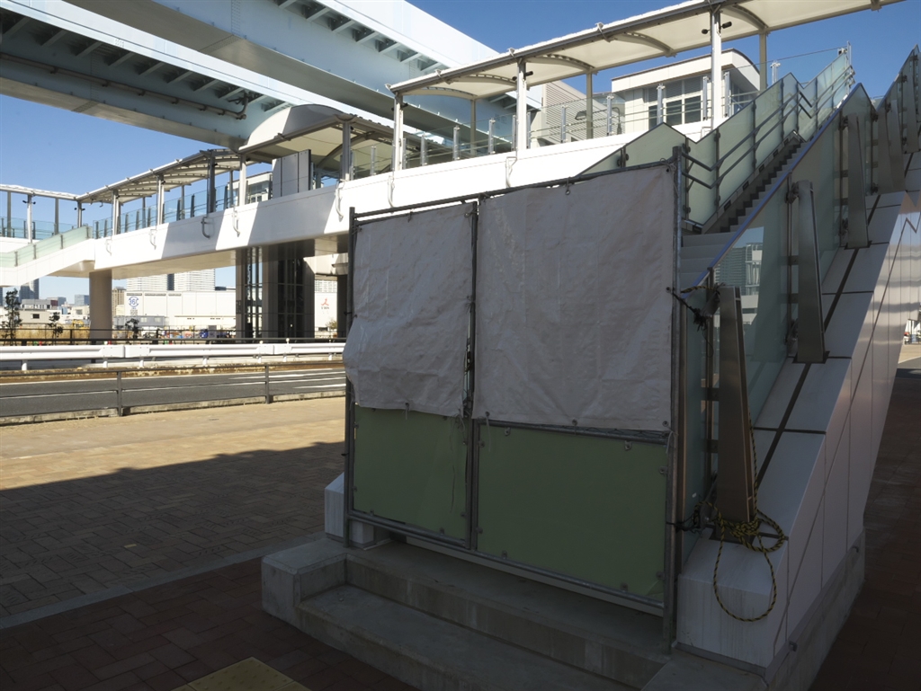 中に繋がる歩道橋もフタがして会って通れない。