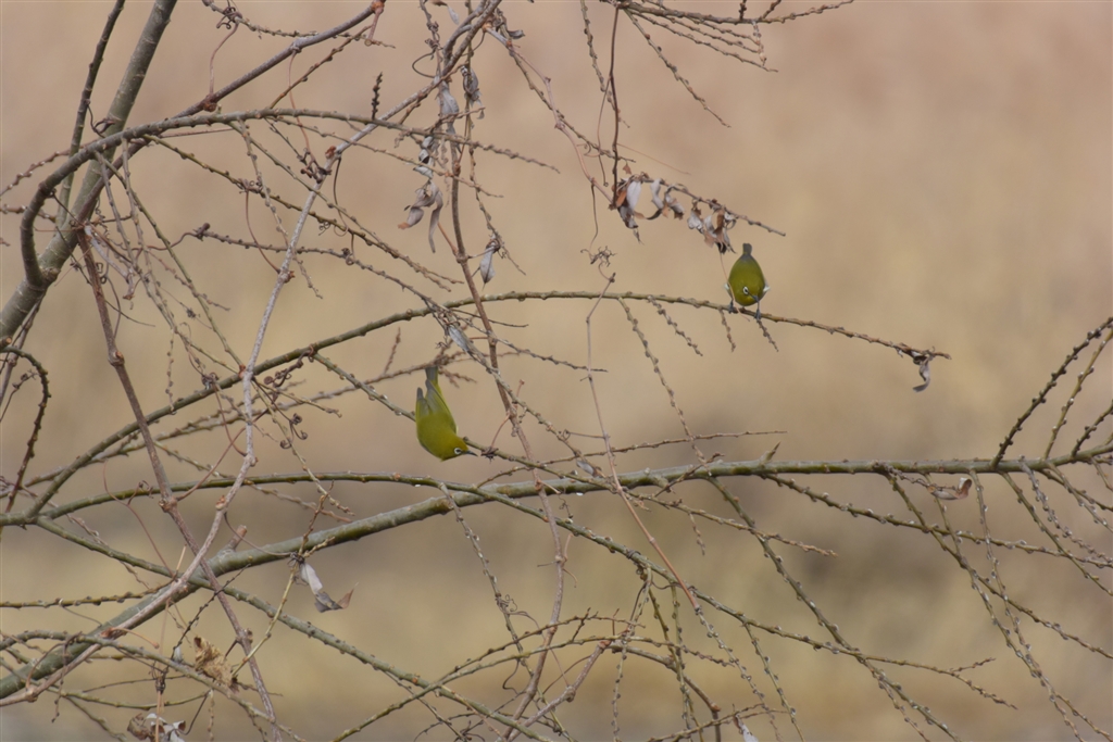 メジロのつがいです。本来こんな絵(シーン)が好きなのですが修練不足です