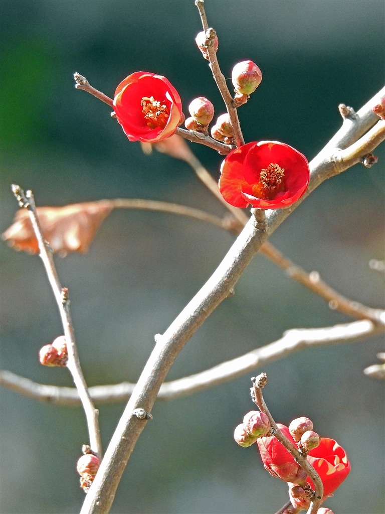 ボケ(木瓜)赤花 この時期に咲き出すともう寒ボケとは呼ばない。