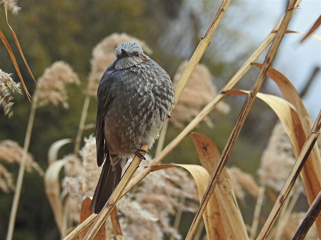 前スレのレスに続き、同じヒヨドリの「体温調節の膨羽行動」を角度を変えて撮影