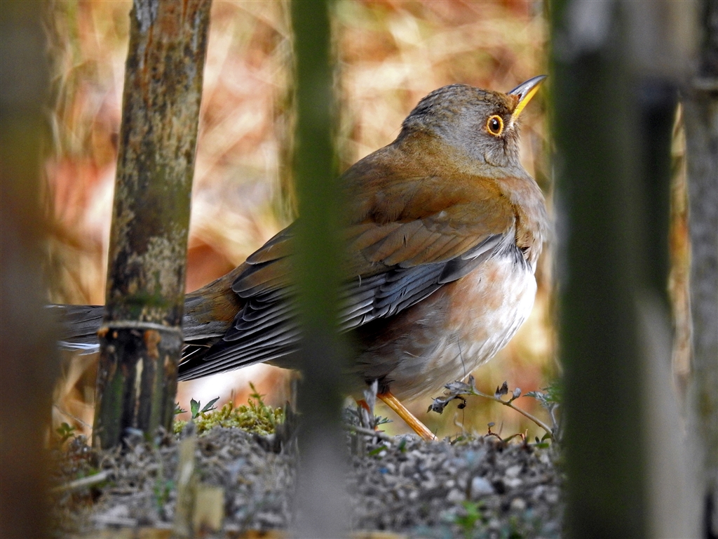 竹林の中をうろつき回るシロハラの散歩に付き合ってカメラもアッチ向きコッチ向き
