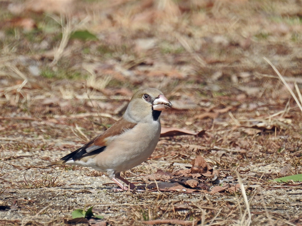シメ♀ しきりに枯草を剥がして虫か種か何かを食っていた。 換算2000mm