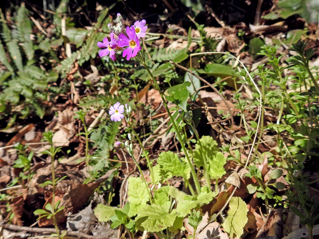 前スレの2月17日に紹介した自生の日本サクラソウの小群落が咲き出しました