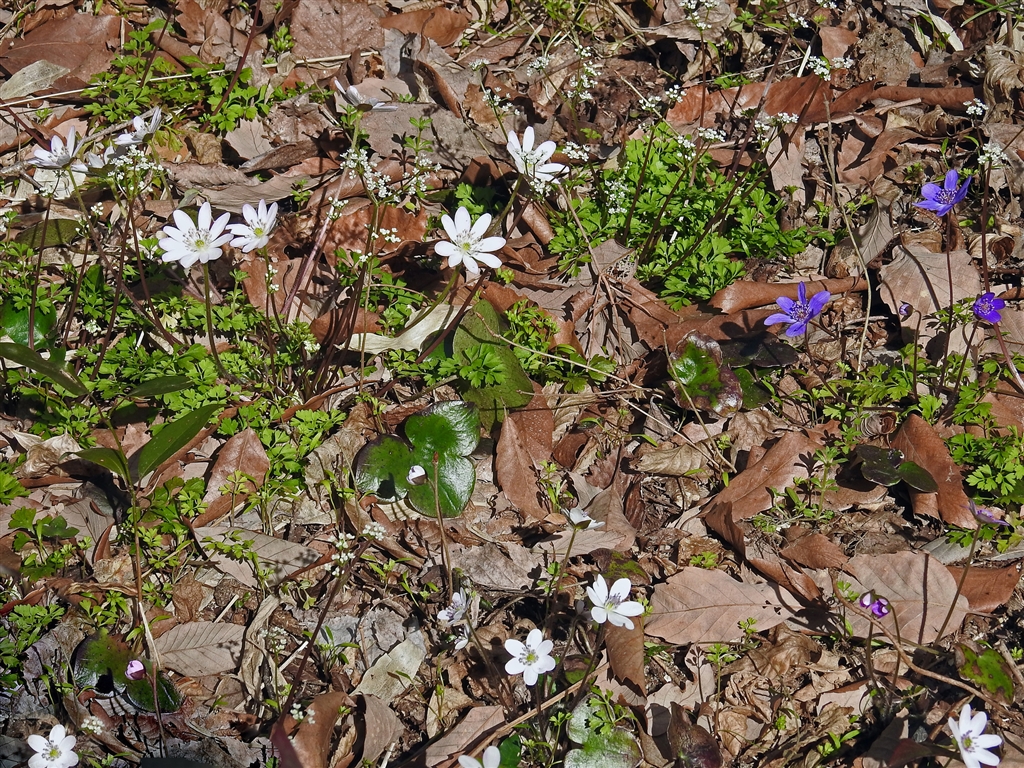 170pぐらいの目の高さから撮るとミスミソウはこんな小さな花。