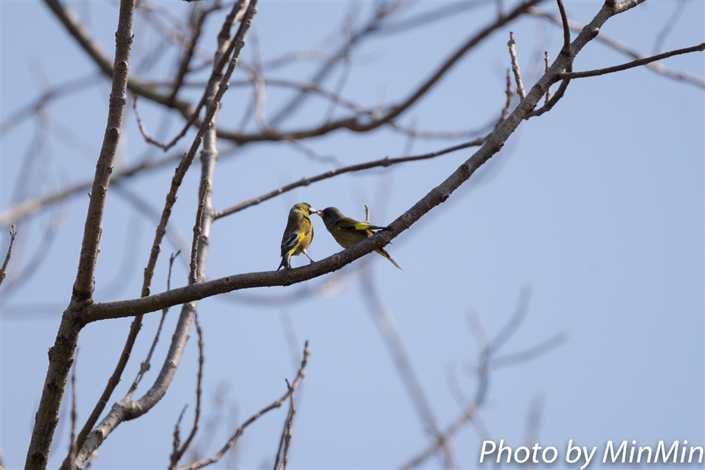 カワラヒワ親子の給餌^^