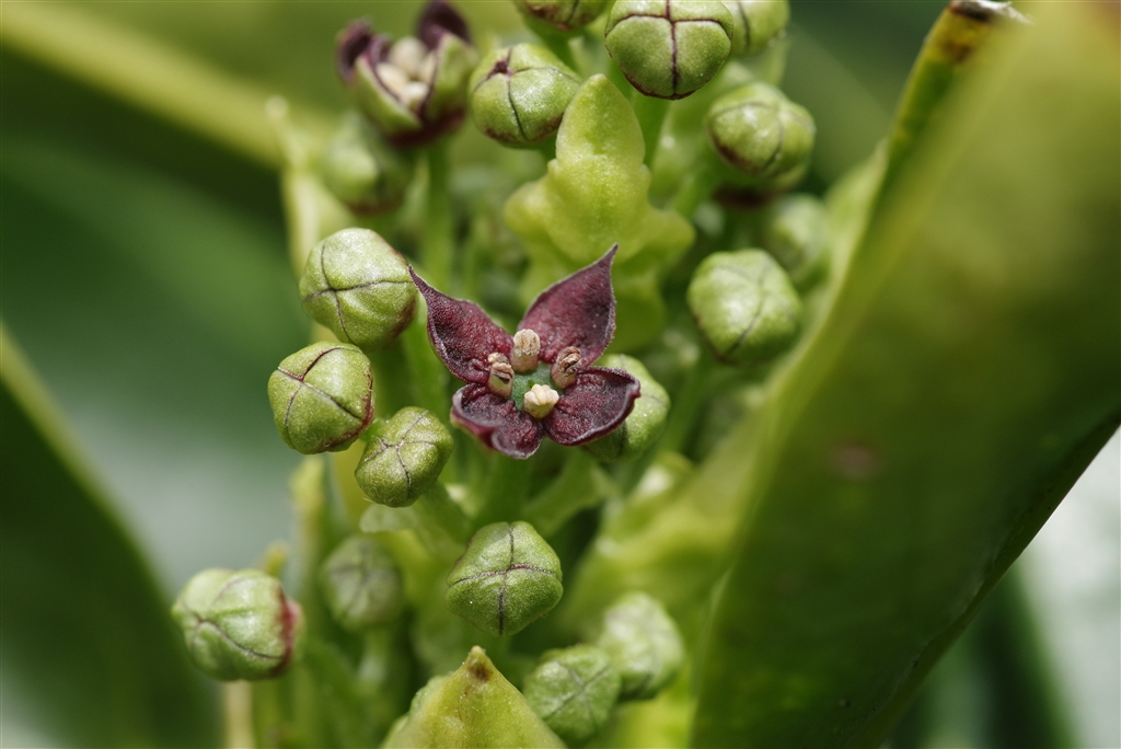 咲き始めたアオキの花