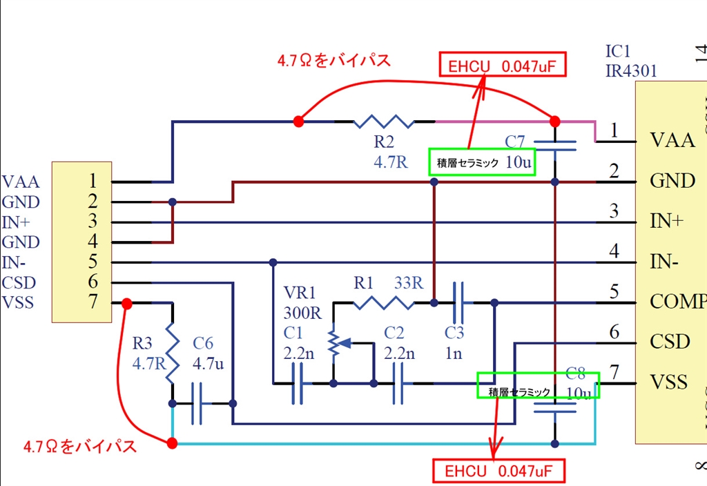 赤小基板 回路修正箇所