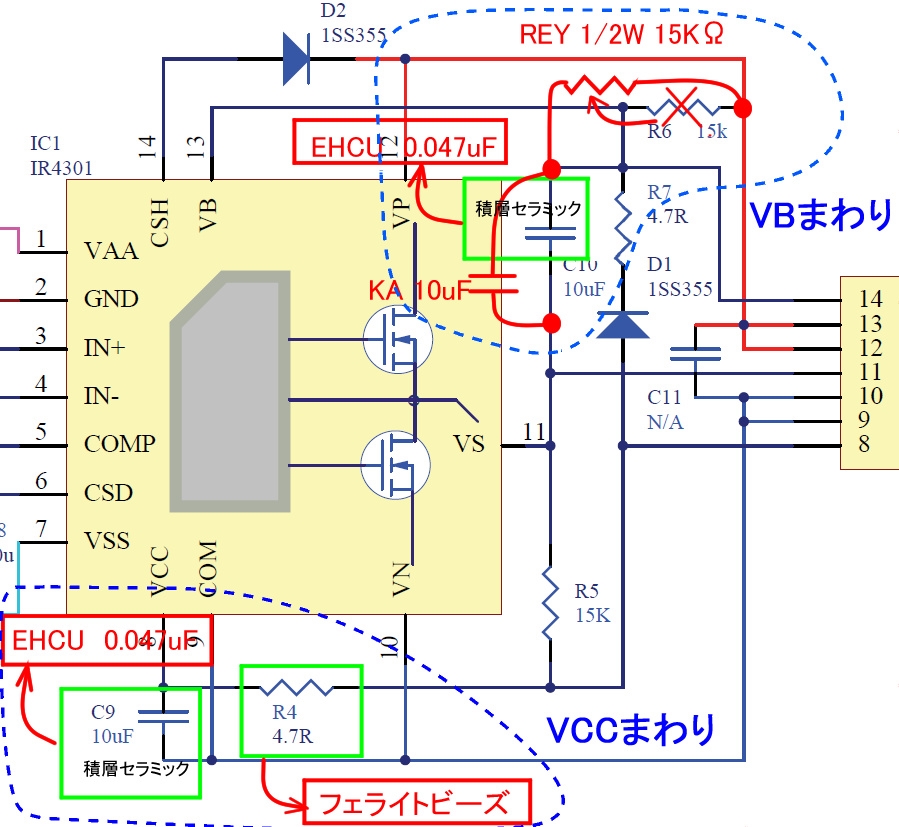 VCCまわり 1608サイズのチップ抵抗をフェライトビーズに換装が難しい