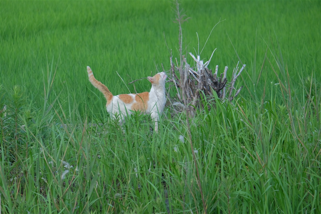 猫の後ろは田んぼ(稲)ですが、こう見ると手前の草とそう変わりませんね