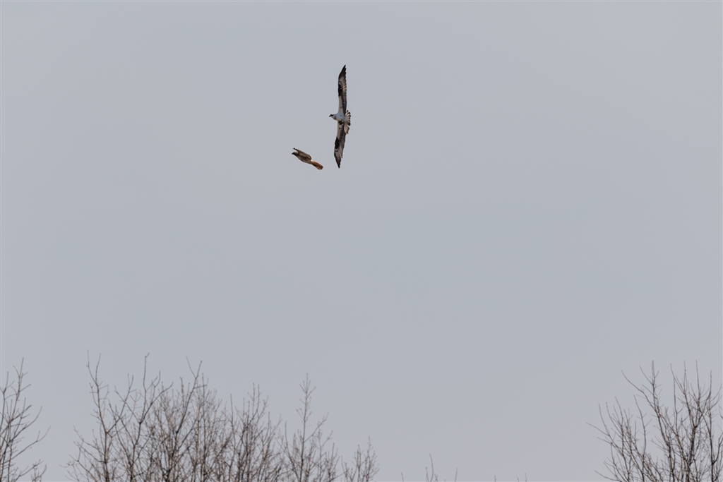 遠くでミサゴン、ノスリンの空中戦
