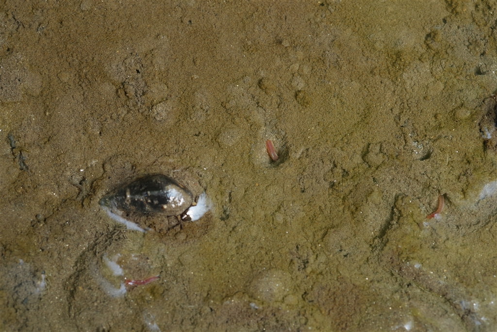「くる禁」 ? 水温む泥池でタニシとアカムシ