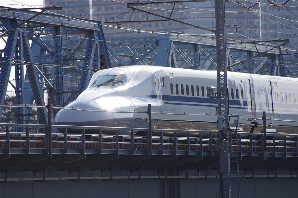 多摩川を渡る新幹線