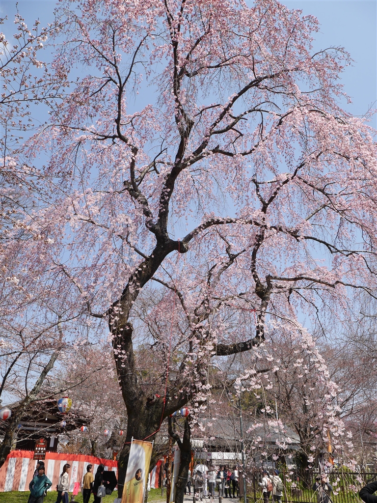 平野神社桜苑の枝垂桜は見頃でした…右隅に人影入り込み少し失敗。