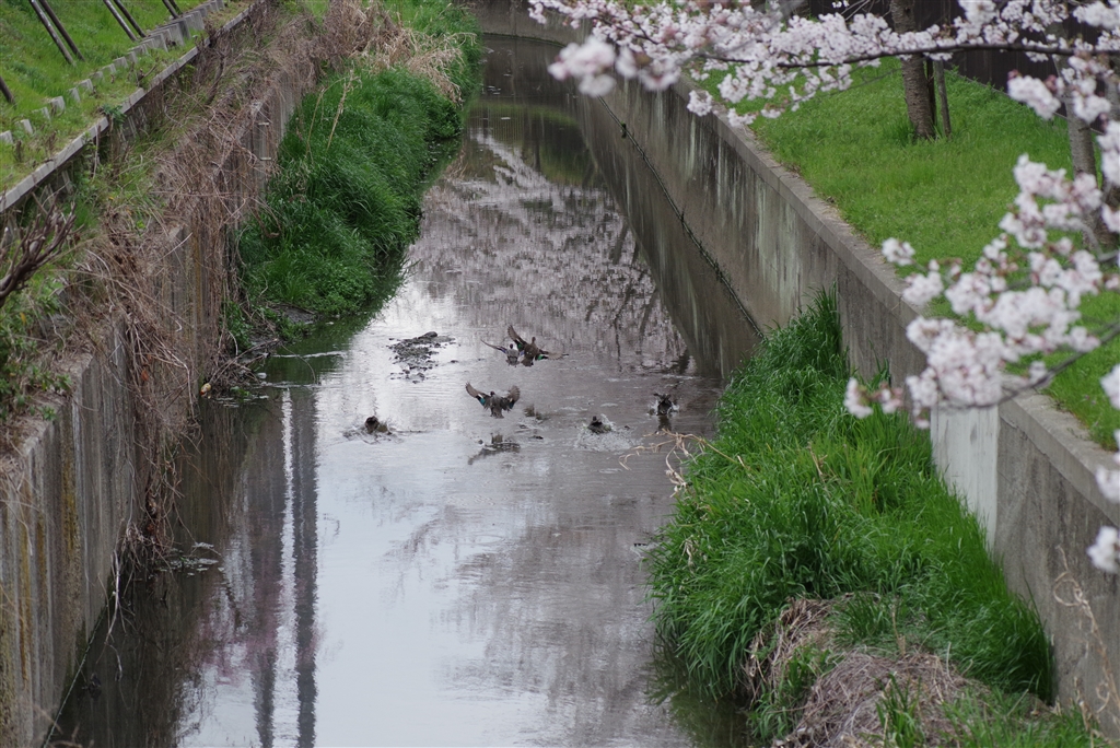 桜と鴨