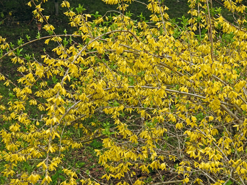 シナレンギョウ 中国原産 雌雄異株 4月に葉と同時に黄色の花を下向きに咲かせる