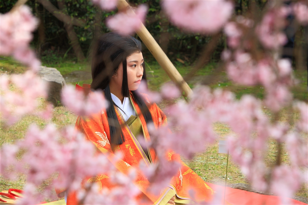 曲水の宴の周りを取り囲む観覧客を避けると思うように写せず