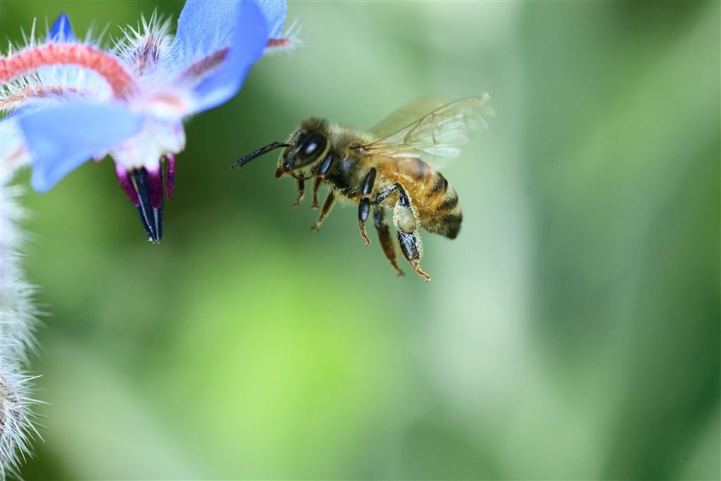 セイヨウミツバチは吸蜜する花の品定め中に撮るのがコツ…でも小さいので撮りにくい