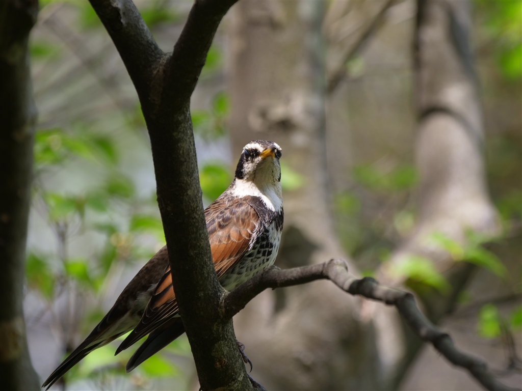 珍しく枝に止まったツグミさん