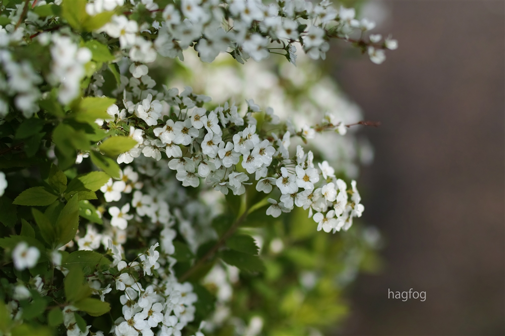 いつものユキヤナギ。雨に濡れる