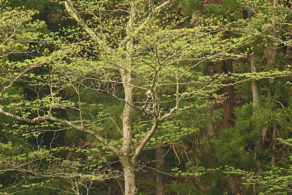 なぜかオシドリが飛んできて100mくらい先の木に止まりました