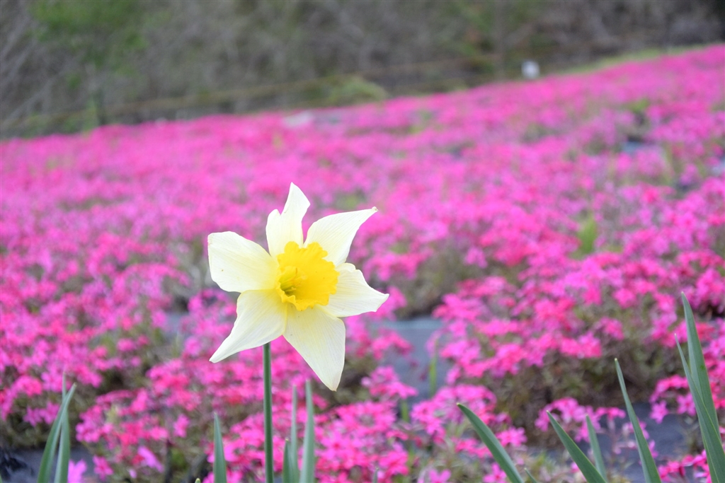 芝桜と一輪の水仙