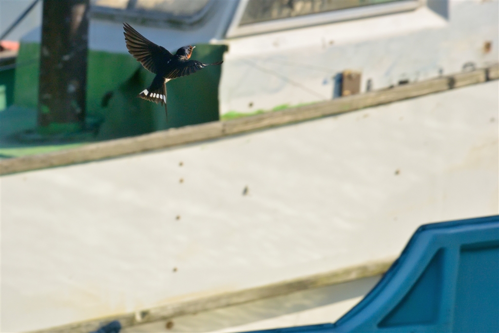 漁船を飛び交うツバメをパチリ ツバメの位置が思うように行きません(^_^)
