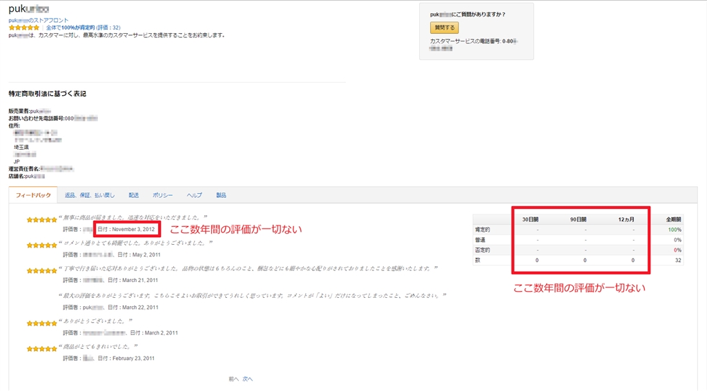 [再掲]S100(新品)激安の出品者評価、ここ数年間の評価が一切なし