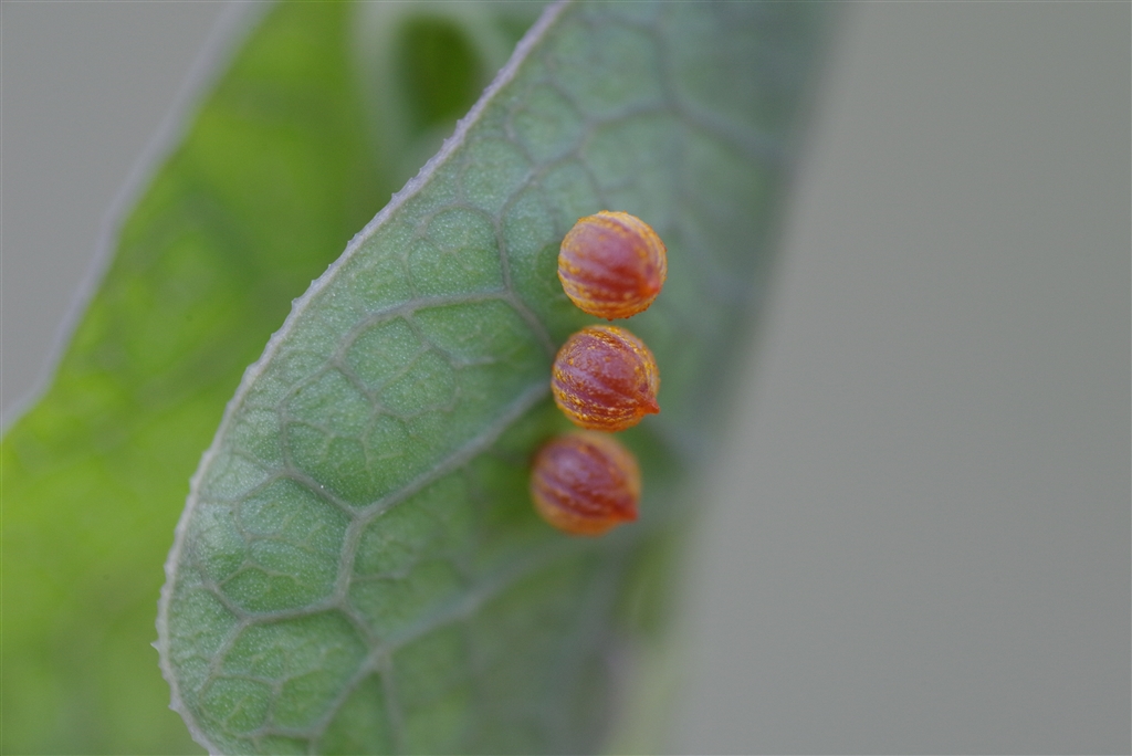 ジャコウアゲハの3個の卵 2.4倍