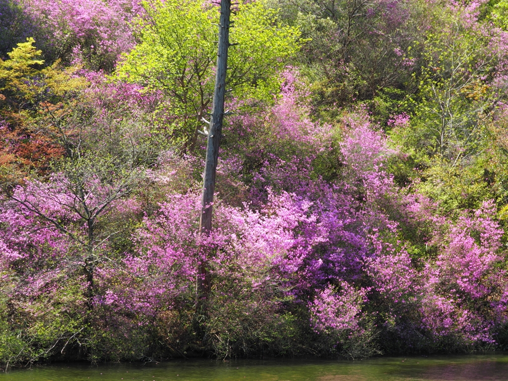 新緑とミツバツツジ