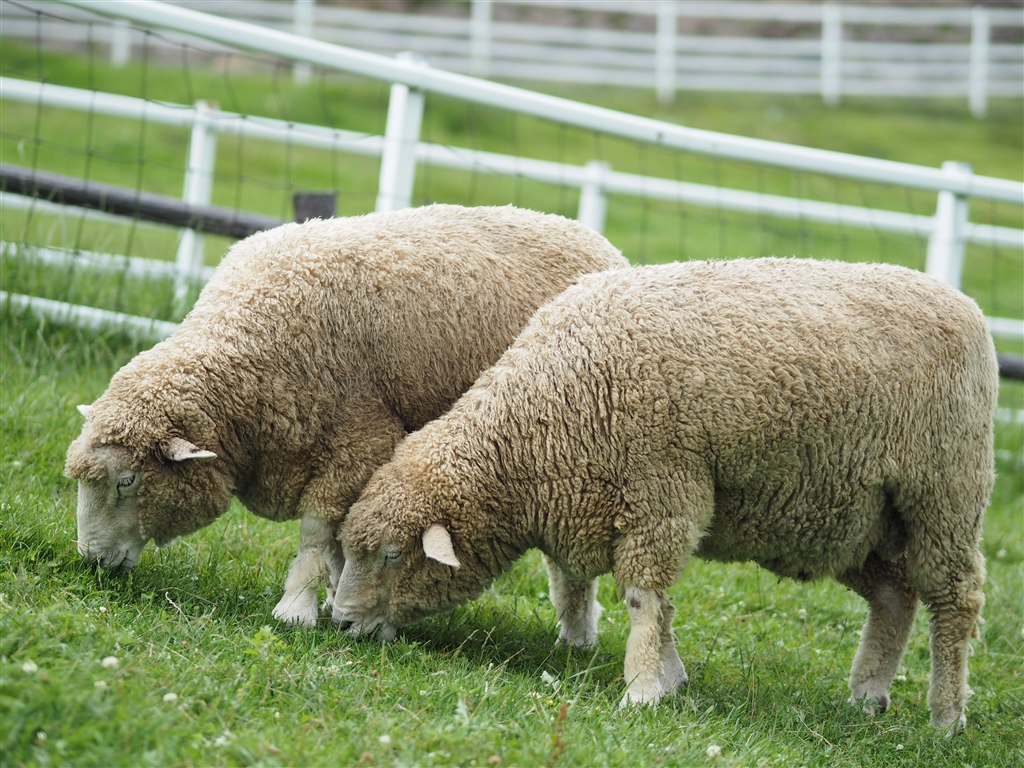 まきば公園のひつじたち。のんびり食事中。