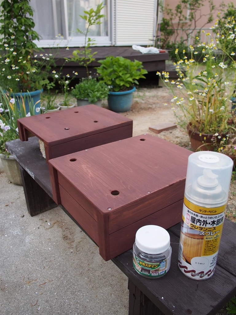 水性ステイン(マホガニー) で1回目塗装