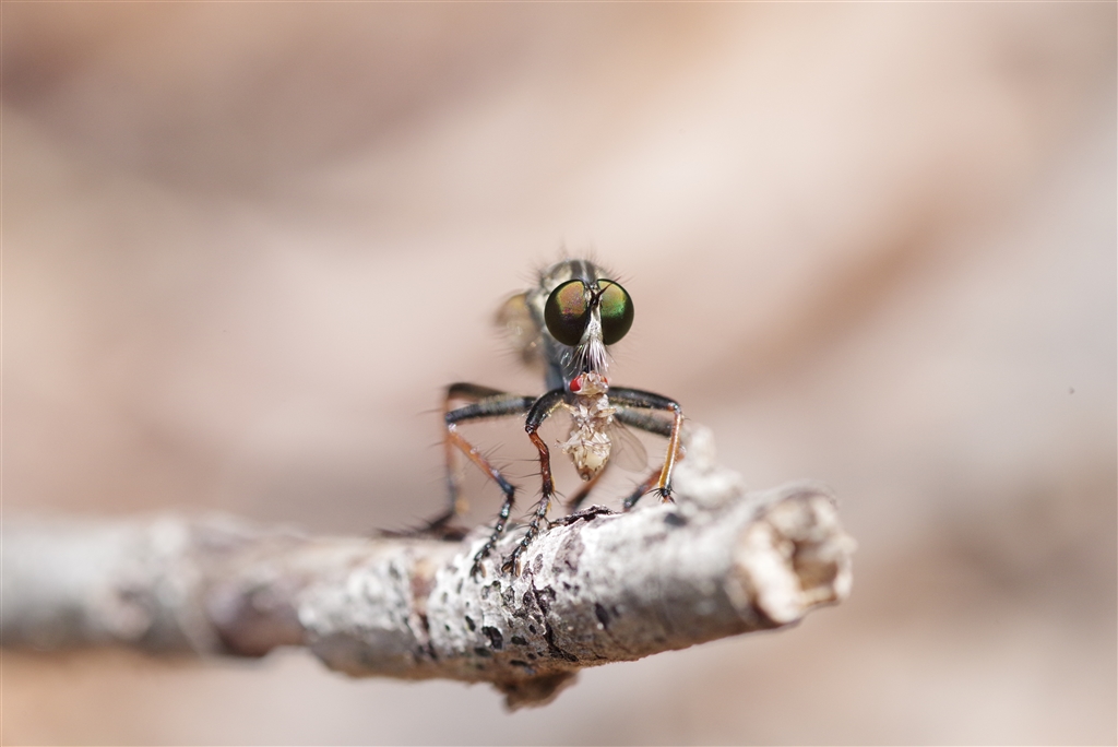 「くる禁」 眼の赤いアブ?ハエ?を捕まえてきた 等倍 2.4倍の前に飛び去りました