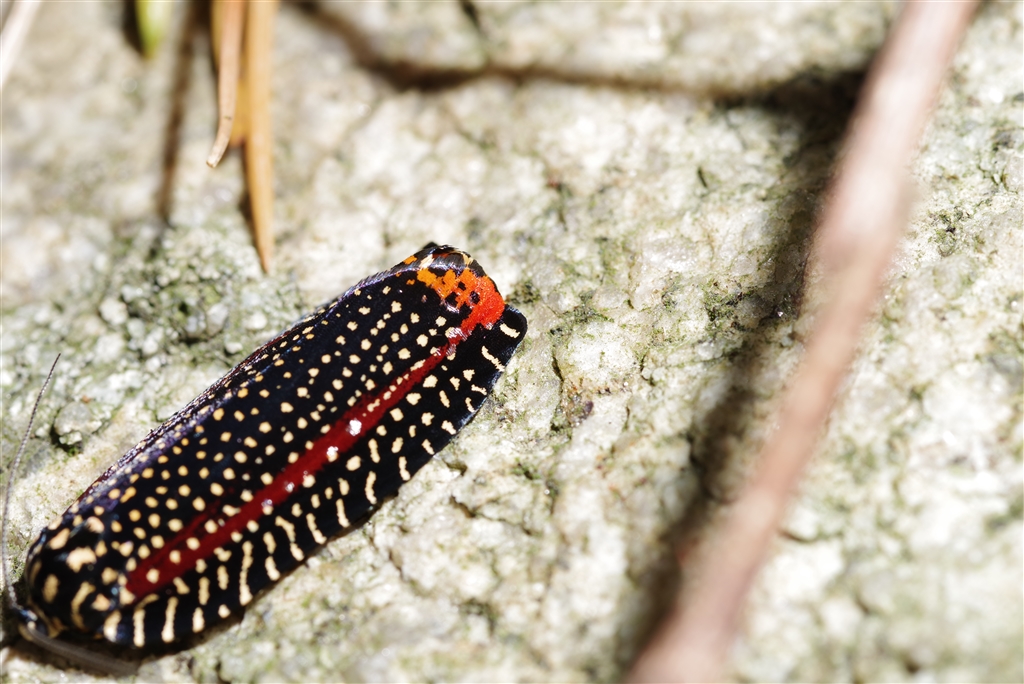 「くる禁」 残念!赤い方が頭だと思ったらお尻だったビロードハマキガ 等倍