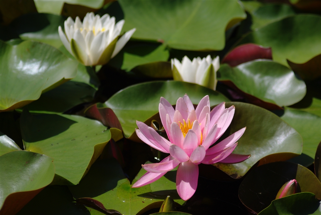 桃色の睡蓮も咲いています。