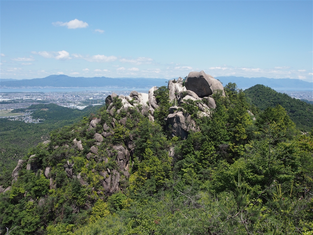 稜線より天狗岩と鶏冠山を振り返る。