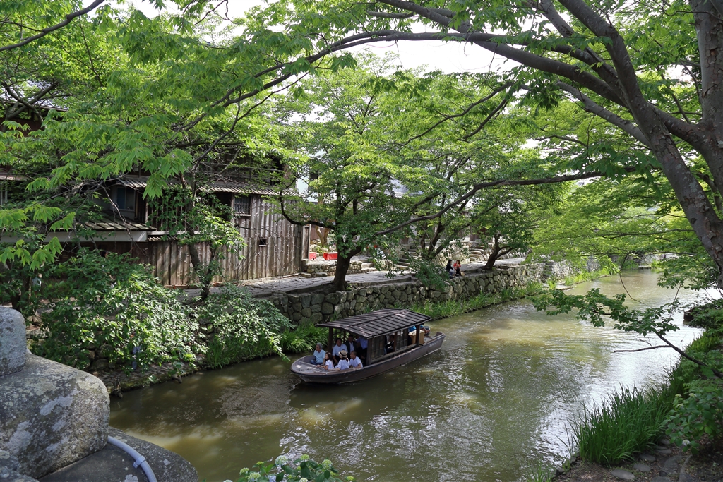 八幡堀巡り エンジン付きです。さくらの時期はさくらのトンネルです