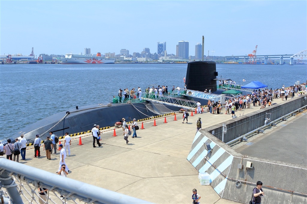 潜水艦と旅客船(神戸市魚崎浜・海自阪神基地にて)