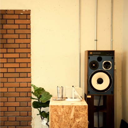 ケンリックのスピーカーが置いてあるカフェ