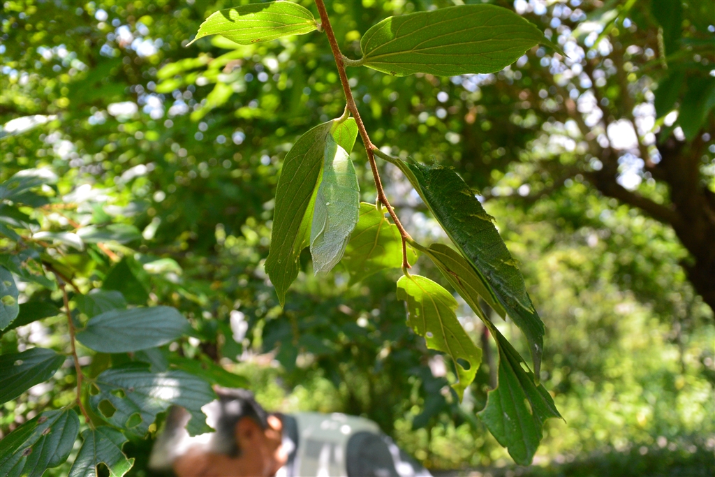 幼虫とさなぎ(薄い色の葉っぱのようなもの)