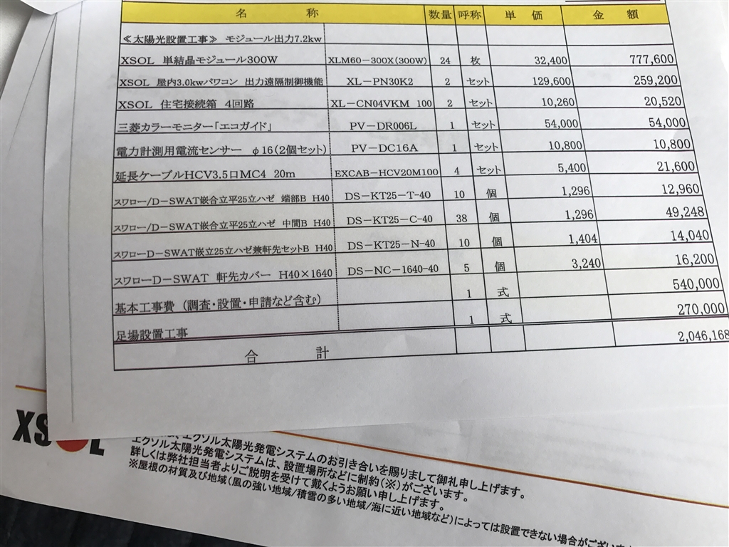 『見積もり書です。』 太陽光発電 なんでも掲示板 絶壁虹パパさんのクチコミ掲示板画像1/1